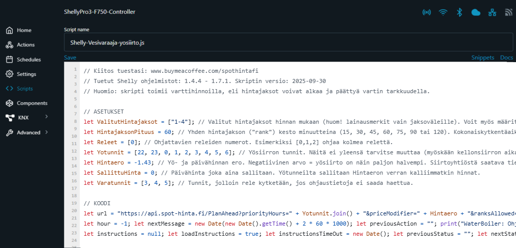 Huom! Jos et halua käyttää tätä kirjasto-toimintoa, voit hakea skriptit käsin täältä: https://github.com/Spot-hinta-fi/Shelly